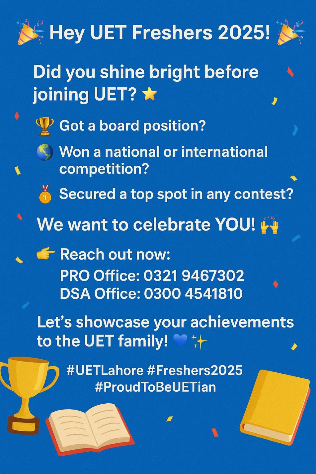 UET Lahore Invites Freshers 2025 to Showcase their Achievements