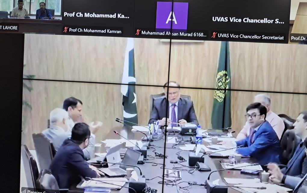 Vice Chancellor UET Prof. Dr. Shahid Munir (TI) is in a meeting with Minister for Planning Development & Special Initiatives Ahsan Iqbal Chaudhary regarding development projects at UET Lahore, Narowal Campus.